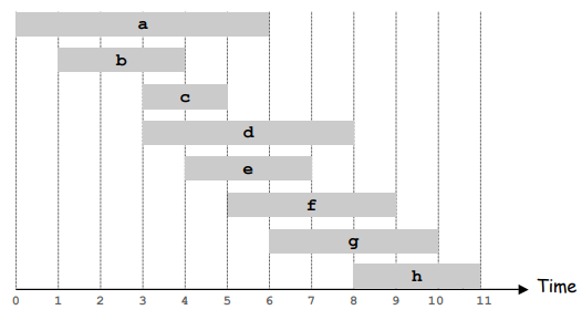 You can only do one job at a time. So you need to choose some intervals so that none of these intervals intersect. What is the maximum number of intervals you can choose?